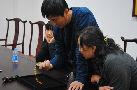 4月12日,在劉灼老師講座結(jié)束后,一位觀眾拿著自己收藏的玉器向劉灼老師現(xiàn)場請教