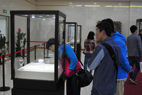 本次展出的玉雕精品向觀眾開放,經(jīng)工作人員的輔助,觀眾可用手感覺玉雕的質(zhì)感