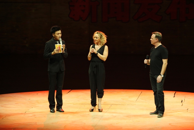 夢工場《馴龍高手》超現(xiàn)實劇場秀執(zhí)行導(dǎo)演David Wright(右)和駐場導(dǎo)演Leigh Anne(中)亮相發(fā)布會