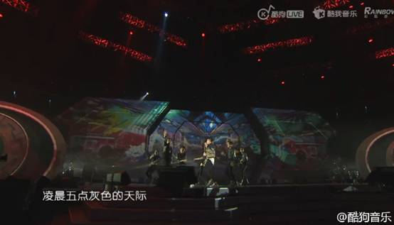 本次酷音樂(lè)盛典歐豪表演的亮點(diǎn)在于他背后那塊精致屏幕。噴火的歐美涂鴉效果猩猩來(lái)自于全息舞臺(tái)3Dmapping,是不是有種置身于科技舞臺(tái)奇幻旅程之中的感覺(jué)?