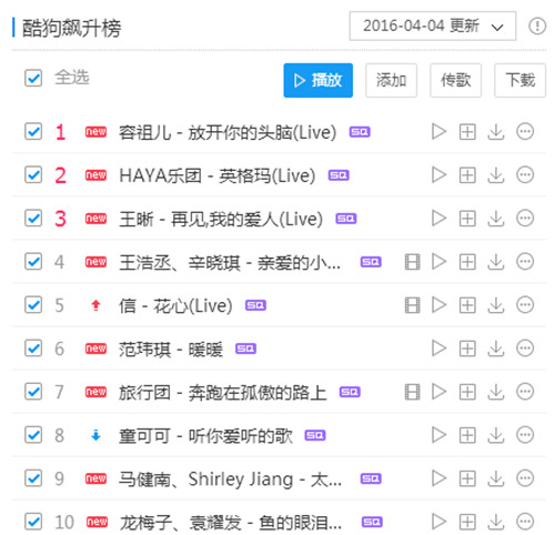 容祖兒補(bǔ)位《我歌》之后每期都帶來令人眼前一亮的演唱,從精彩亮相的《夜半小夜曲》,到《想著你的感覺》、《煞科》、《突然想愛你》和《Bad boy》,她的表演時(shí)而細(xì)膩豐富,時(shí)而霸氣張揚(yáng),每一期的歌曲都登上酷狗飆升榜并保持在前五之列,足見這位粵語(yǔ)歌壇天后的實(shí)力。