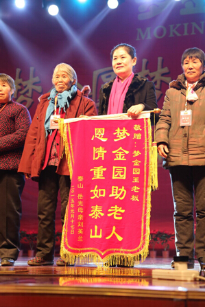 1月17日,濰坊市委黨校會議廳近千人濟濟一堂,歡聲笑語。2014年孝心基金發(fā)放儀式在這里隆重舉行。當山東夢金園珠寶首飾有限公司董事長王忠善把2400元現(xiàn)金發(fā)到每位員工父母手中的時候,臺下爆發(fā)出雷鳴般的掌聲。據(jù)了解,現(xiàn)場發(fā)放孝心基金近百萬元。